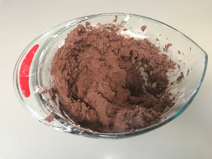Put the butter and sugar in a large bowl and mix with your hand mixer until well combined – about 3 minutes or a little longer.Next, add in the egg and vanilla and mix, followed by the flour, cocoa powder, baking powder, baking soda and salt and mix again until everything is well combined.