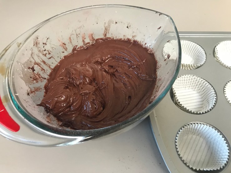 Spoon the batter into cupcake tins filled with cupcake liners, filling each cup about 2/3 of the way full.
