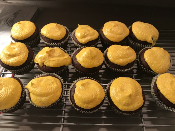 And, to be completely honest and upfront, these turned out to be the most “ugly desserts” of Ugly Desserts I’ve made in a looong time. So. Many. Issues. It was really hot in SF when I made them so the icing got a little runny and didn’t really hold its shape like I wanted it to and the orange turned, well, a color that’s not really orange.