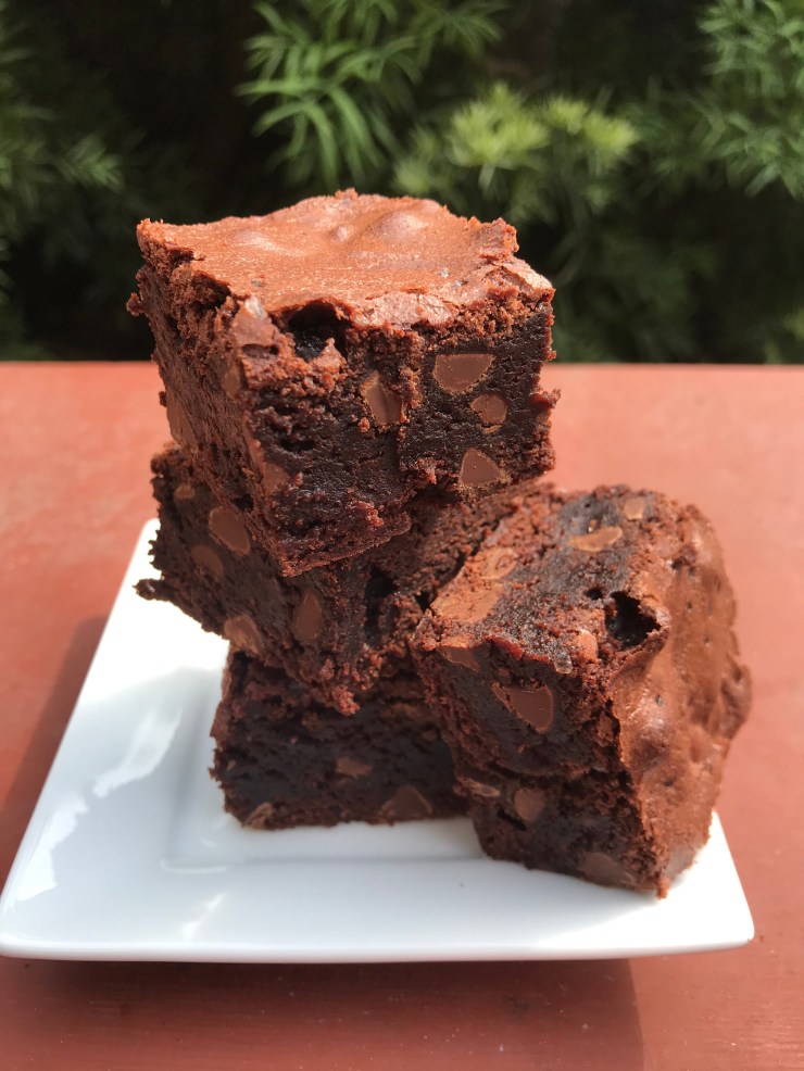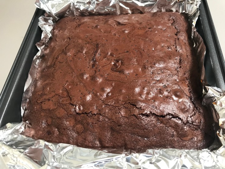 Add in the eggs and vanilla and, you guessed it, whisk until well blended. Finally, add in the flour and whisk that in until it’s well blended. Now put the whisk away and shake out your arm – it’s gotten a bit of a workout.