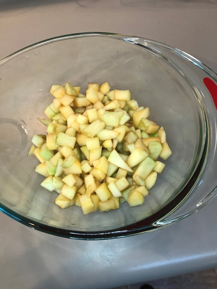 Dice the apples into small chunks and set that aside in a bowl – you’ll need it soon.