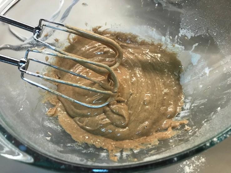 Put the eggs, brown sugar, vanilla and milk into a large bowl and mix until well combined. Add in the flour, baking powder, cinnamon and baking soda and mix again, until everything is once again well combined.