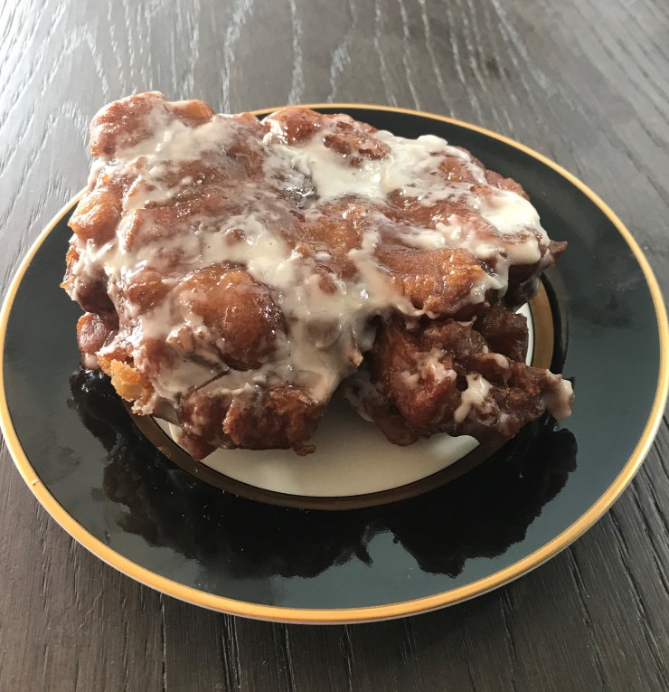 While I’m not always a fan of fruit, I have to say that apple fritters are one of my all-time favorite things in the world. I think because there might not be another dessert that includes fresh fruit…yet still screams out that this is NOT health food.