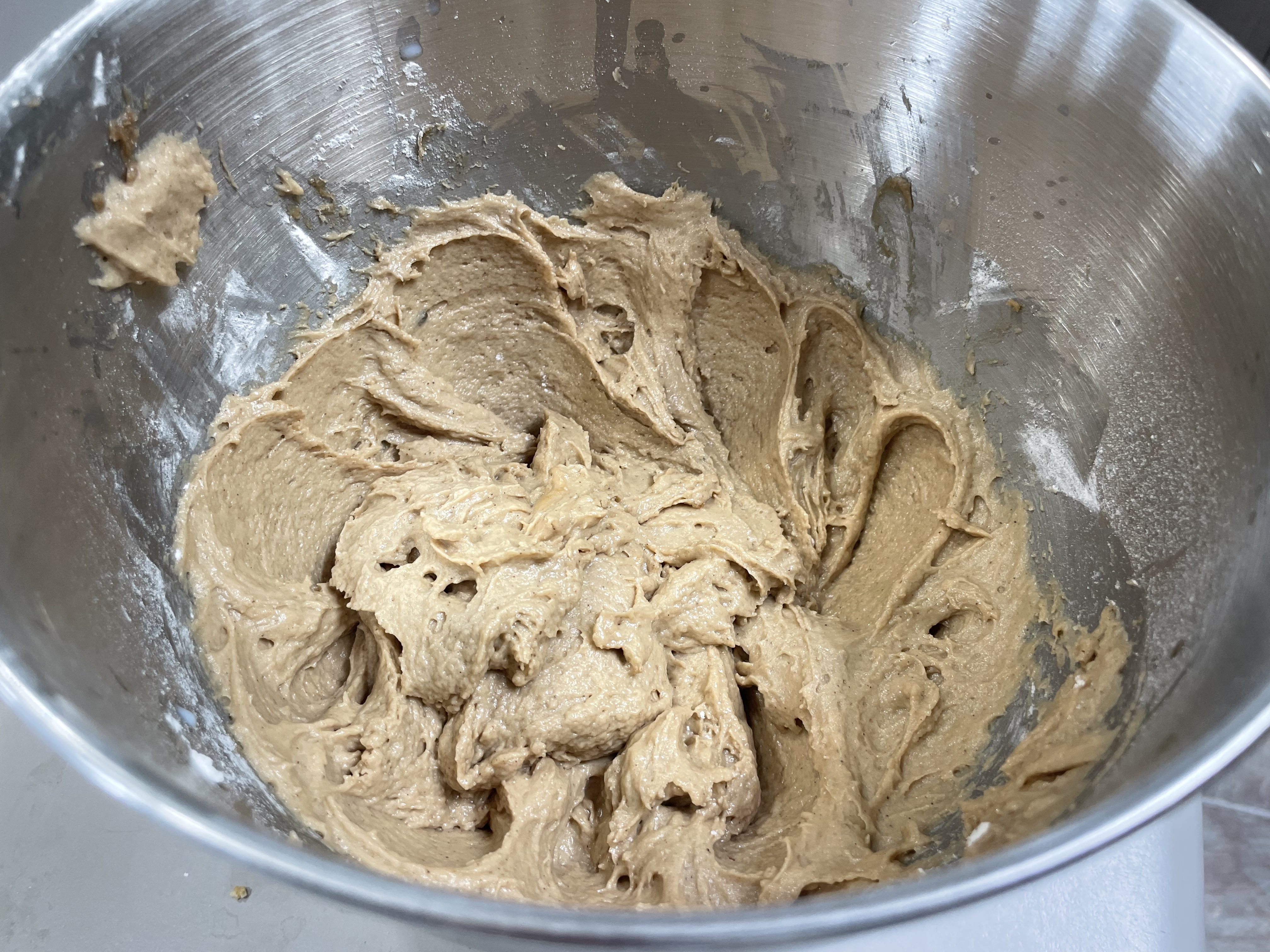 In a small bowl, whisk together your dry ingredients – the flour, baking powder, cinnamon, allspice and salt. Set this aside.In a large bowl add your butter and brown sugar and cream until smooth. Add in the rest of your wet ingredients – the egg, milk, rum, vanilla and almond extract and mix again until well combined.