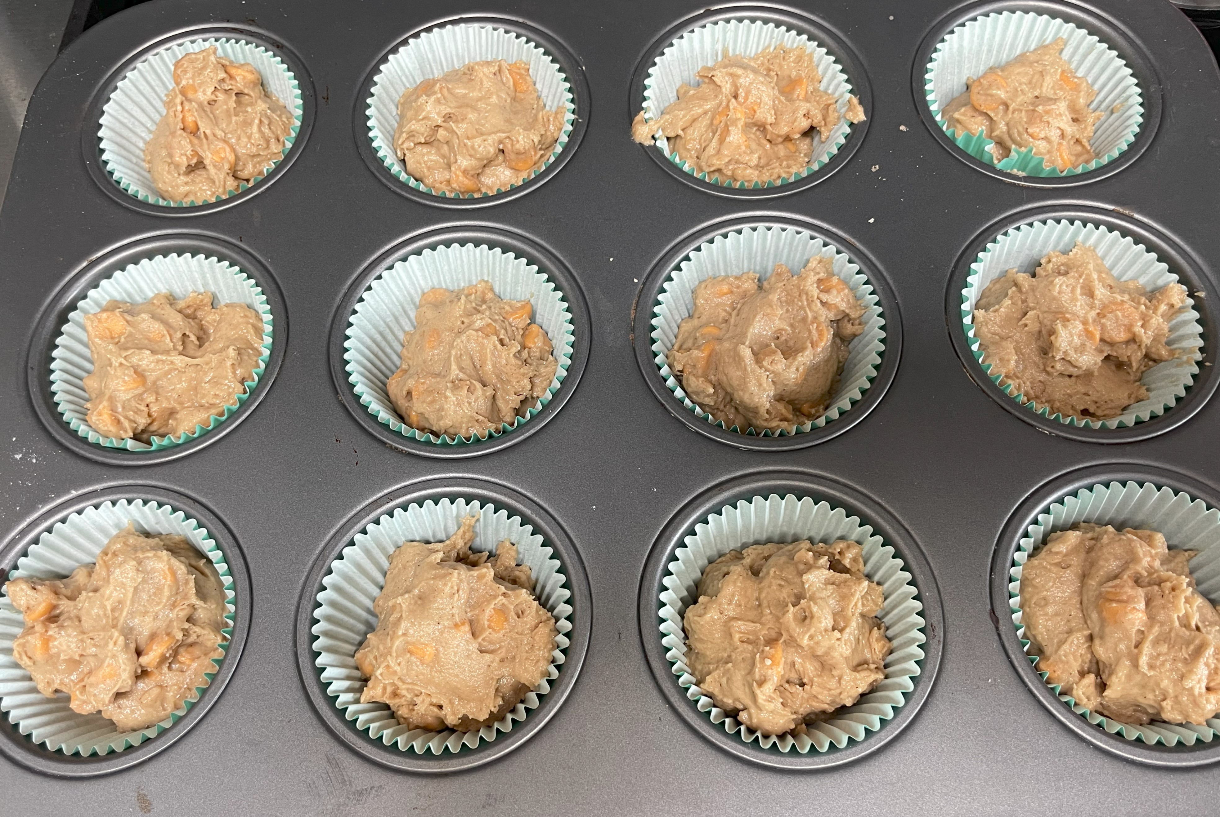 Get a muffin tin and line 16 cups with cupcake liners and fill each cup about ¾ of the way full with your batter.