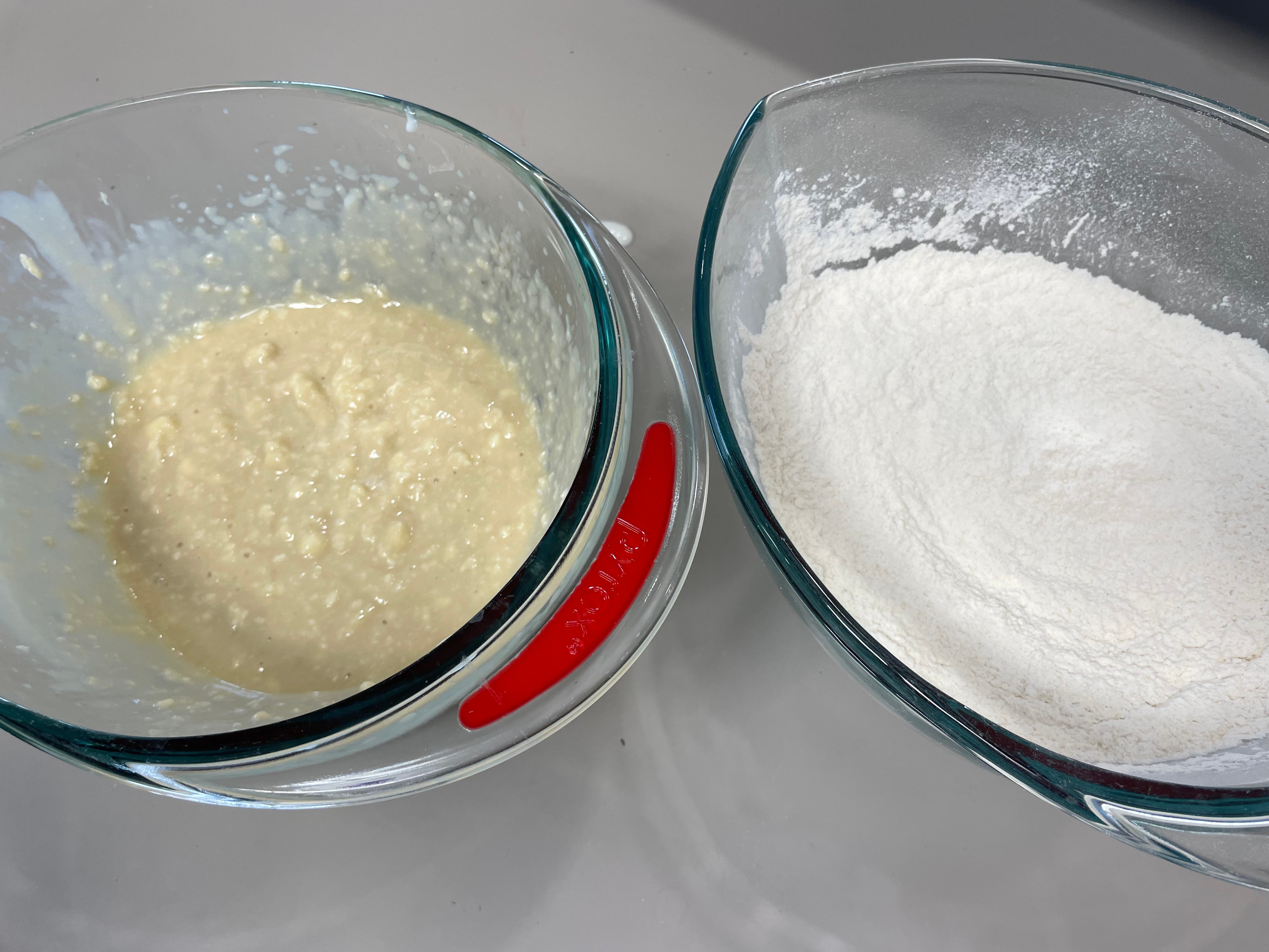 Throw your flour, sugar, baking soda and salt into a medium bowl and whisk everything together.