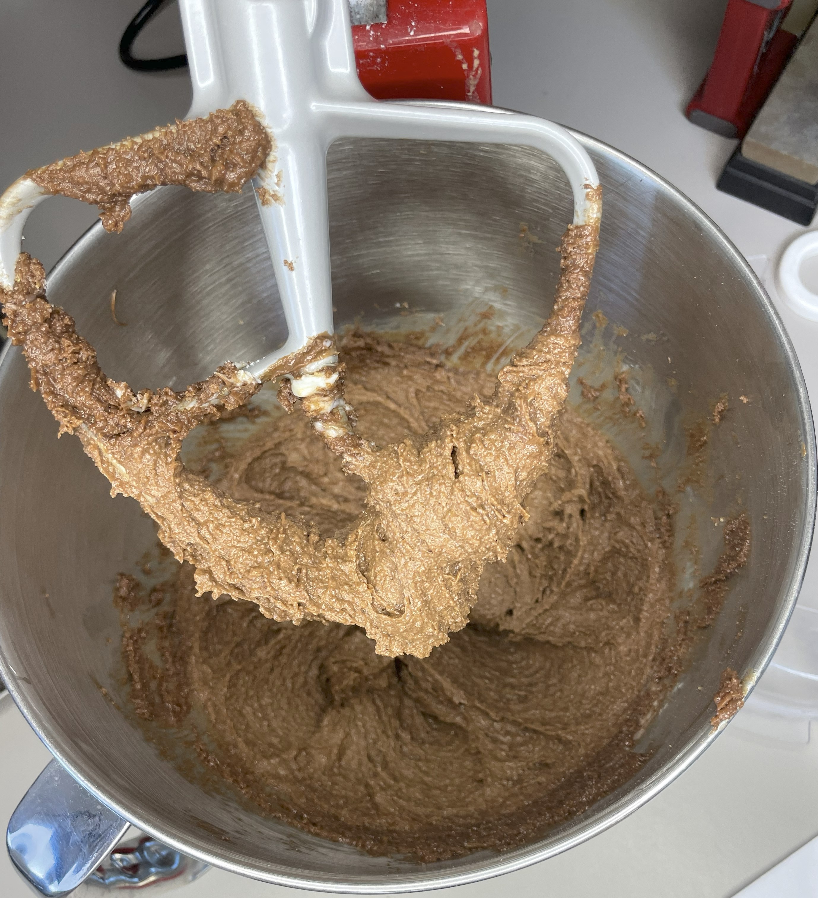 In a separate bowl, cream together the Nutella, butter, brown sugar and sugar. Once that’s nice and smooth, add in the egg and vanilla and mix until combined.