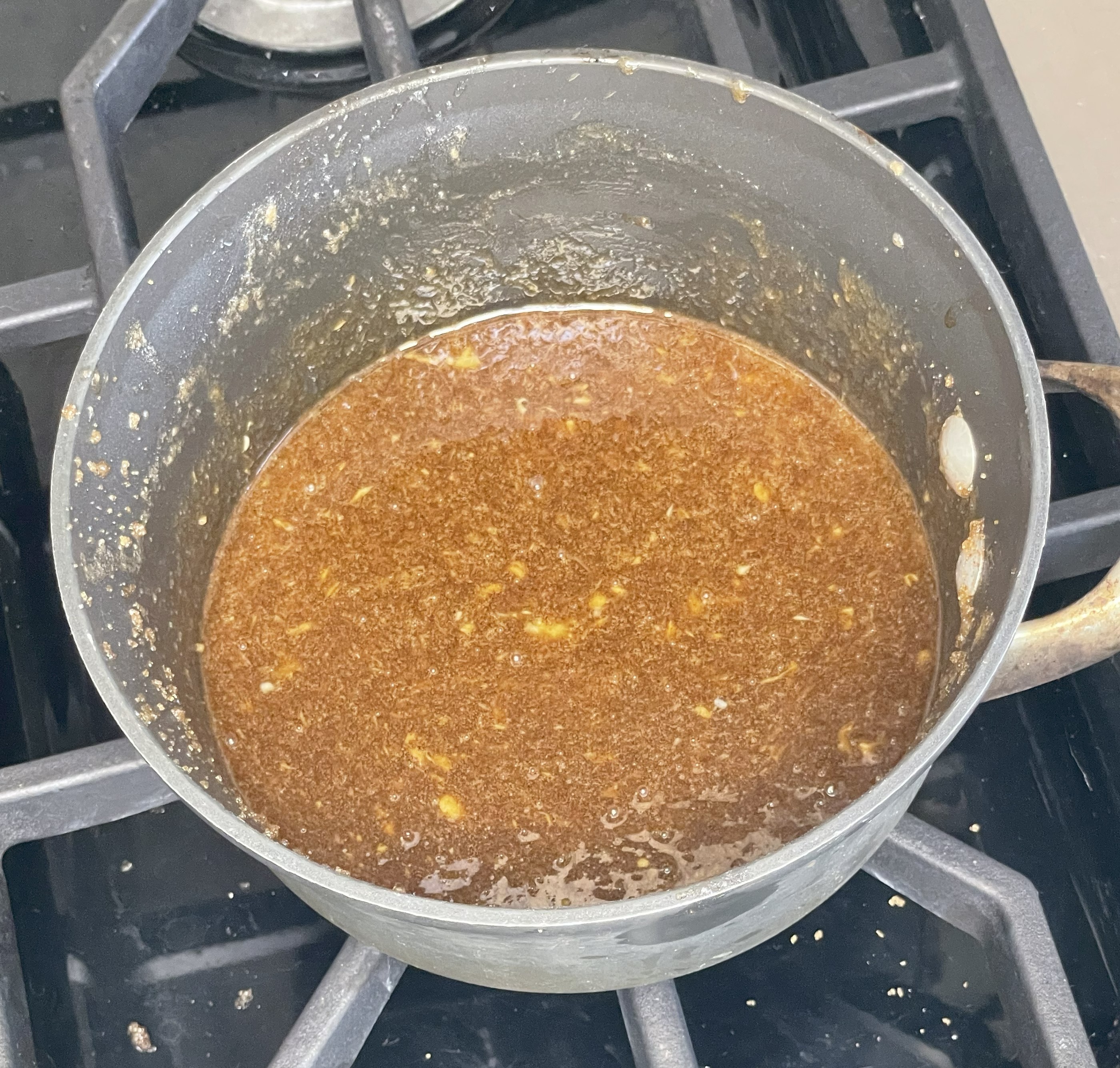 Keep stirring until it’s a nice dark brown then immediately take it off the heat. Add in the brown sugar and whisk vigorously until the sugar is dissolved. Next, add in the egg, egg yolk and vanilla and whisk until everything is well combined.