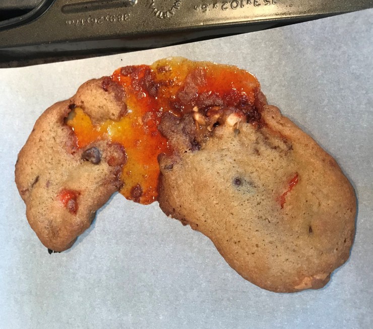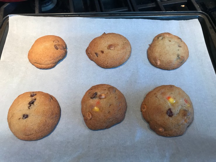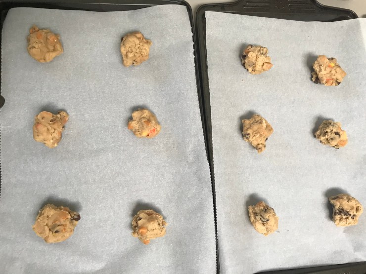 Fortunately, while I may get tired of candy I never get tired of baked goods, so what I did was take some of my leftovers, add stuff I had in the pantry, and make what turned out to be a great cookie.