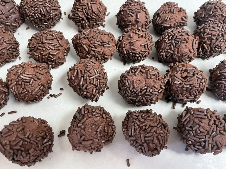 Note – you’ll want to move quickly here, while the chocolate is still firm. If you find it starts to stick to your hands too much, return the bowl to the fridge to harden again. And absolutely wash your hands.