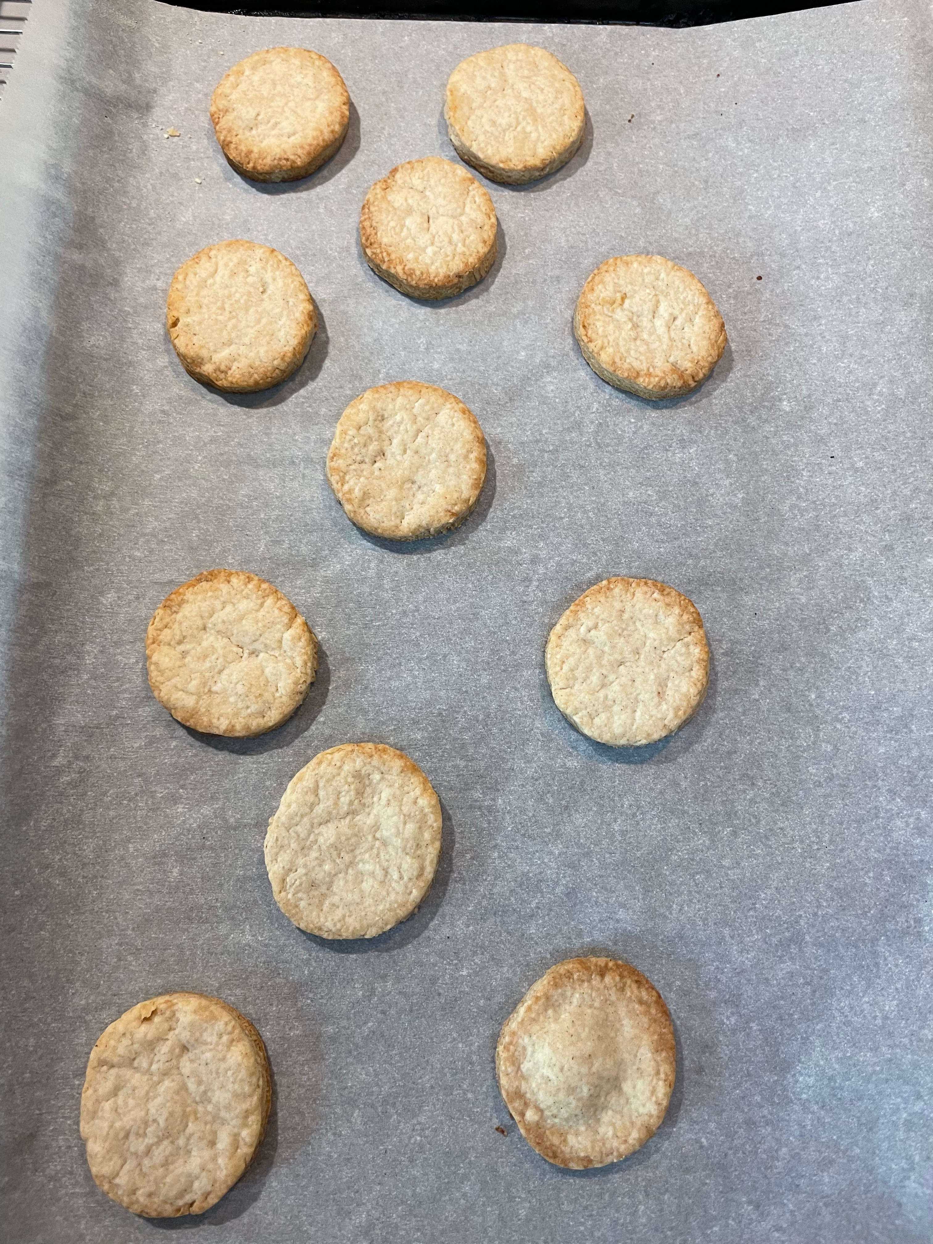 Bake at 350 for about 17-20 minutes, or until they’re a light golden brown. Note that you may have to adjust your baking time, depending on how large of a cookie cutter you use – the bigger the cookies, the longer they’ll need in the oven.